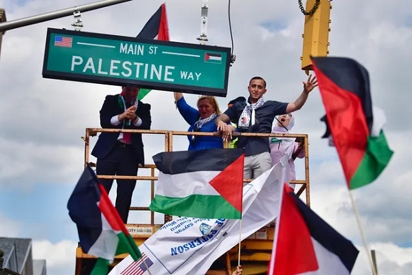 شورای شهر پترسون در ایالت نیوجرسی آمریکا نام یکی از خیابان‌های این شهر را به خیابان «راه فلسطین» تغییر داد. این نخستین بار است که یک خیابان در این کشور به نام فلسطین نامگذاری می‌شود.