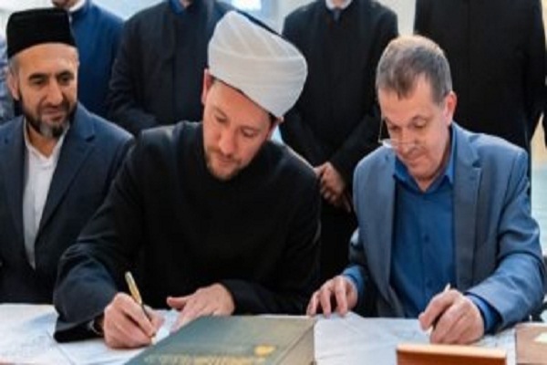 قرارداد انتقال نسخه اصلی قرآن به شهر کاسیمو برای نمایش موقت توسط ضمیر محیالدیناف، معاون اول اداره دینی مسلمانان روسیه، سرگئی بیچکو، مشاور مدیرکل کتابخانه ملی روسیه و رئیس بخش ادبیات آسیا و آفریقا و شوشانا گابکو، رئیس بخش ادبیات ملی روسیه به امضا رسید.