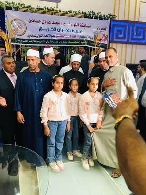 احمد النجار، معلم علوم قرآن الازهر بر مسابقات حفظ قرآن سرلشکر عادل حسانین نظارت داشت و در این برنامه حافظان برتر تجلیل شده و عکس یادگاری گرفتند.