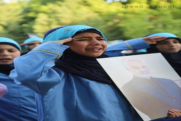 جمعی از فرزندان شهدای مقاومت لبنان هم در این مراسم در حالی که تصاویر پدران شهید خود را در دست داشتند با چشمانی اشکبار سرود سلام فرمانده را همخوانی میکردند.