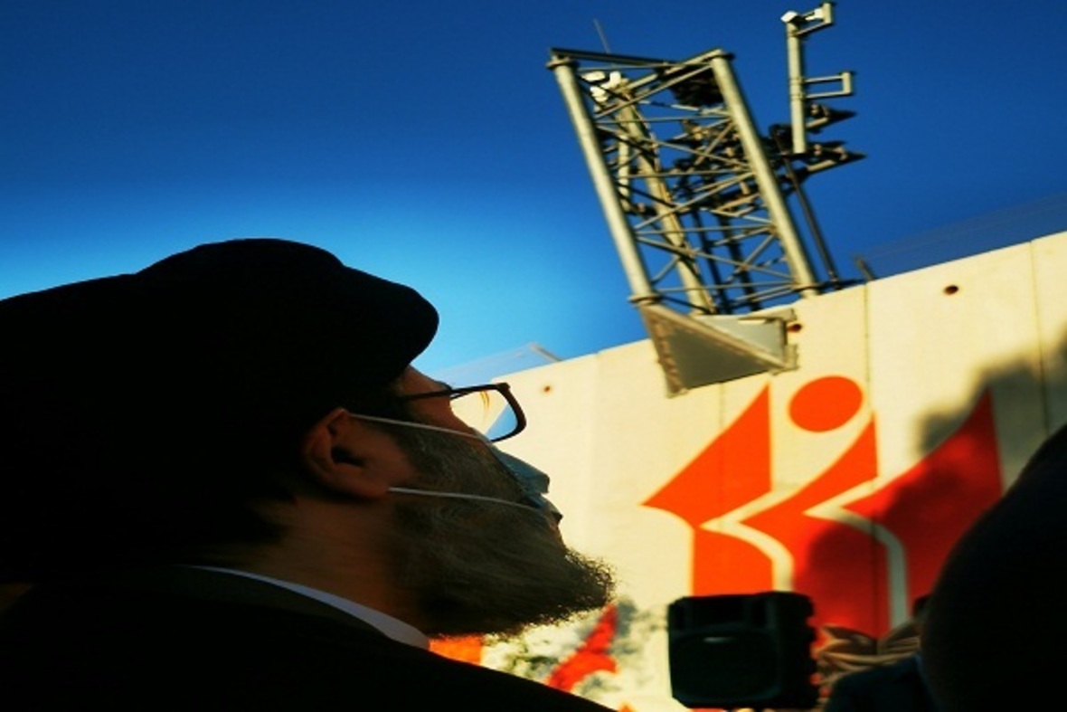 رئیس شورای اجرایی حزب الله لبنان در برابر دوربینها و برجهای نگهبانی رژیم صهیونیستی در محل دیوار حائل بر روی دیوار نماد چهلمین سالروز تأسیس مقاومت را ترسیم کرد.