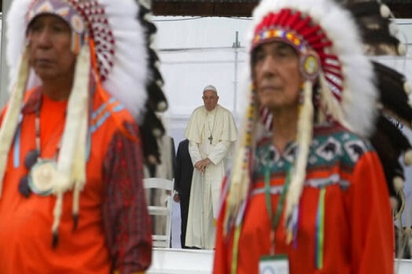 پاپ روز گذشته، سوم مرداد در یک سخنرانی عمومی در استان آلبرتای کانادا گفت: من عذرخواهی میکنم، بهویژه به خاطر همکاری بسیاری از اعضای کلیسا و جوامع مذهبی و همچنین برای بیتفاوتی که از خود در آن پروژههای تخریبکننده فرهنگ و همگونسازی اجباری در مدارس شبانهروزی نشان دادند.