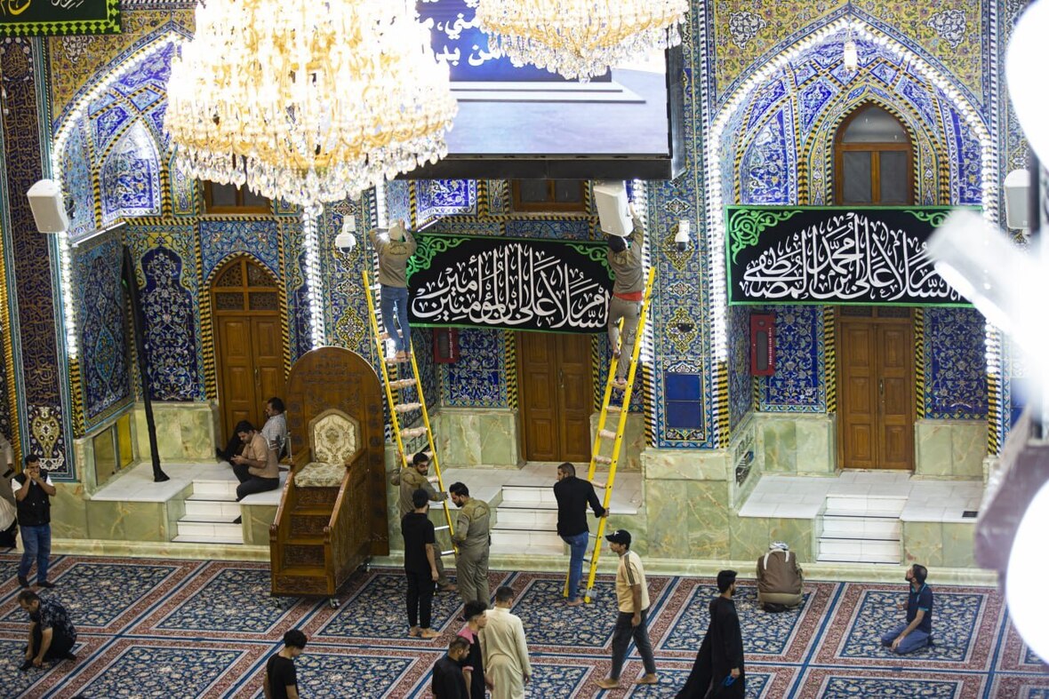 به گزارش ایکنا، در آستانه ماه محرم الحرام و ایام عزاداری سالروز شهادت سرور و سالار شهیدان، اباعبدالله الحسین(ع) و یاران وفادارش، بینالحرمین و حرمهای مطهر حضرت اباعبدالله(ع) و حضرت عباس(ع) با نصب پرچمهای عزاداری و مزین به نام و القاب امام حسین و حضرت عباس(علیهماالسلام) سیاهپوش و آماده استقبال از خیل عزاداران شد.
