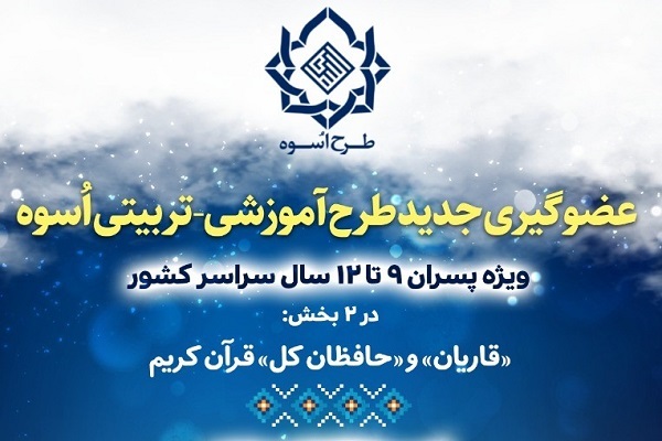 بر این اساس عضوگیری طرح آموزشی ـ تربیتی قاریان ممتاز نوجوان قرآنکریم «اُسوه» با دغدغه تربیت قاریان متخلق به اخلاق قرآنی، باسواد و ممتاز در فن تلاوت، به همت «شورای عالی قرآن» و جامعه فرهنگی- قرآنی عصر پس از بررسیهای کارشناسی آغاز شده است.