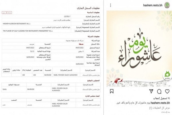 به گزارش ایکنا به نقل از مرآة البحرین، رستوران شناخته شدهای به نام «مطاعم هاشم الاردن» که دارای چندین شعبه در بحرین است، تصویری را در حساب کاربری خود در اینستاگرام منتشر کرده است که در آن عبارت «یوم عاشوراء کل عام و أنتم بخیر» نوشته شده است؛ اقدامی که واکنشهای گستردهای را در صفحه اینستاگرام این رستوران به همراه داشت و در نهایت به حذف این آگهی و همچنین تمام کامنتها و واکنشهای نشان داده شده نسبت به این آگهی منجر شد.