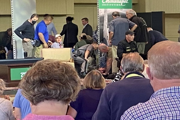 بنابر اعلام منابع خبری، سلمان رشدی در حال سخنرانی در یک مرکز آموزش غیرانتفاعی به نام مرکز «چوتوکوآ» در نیویورک بوده است.
