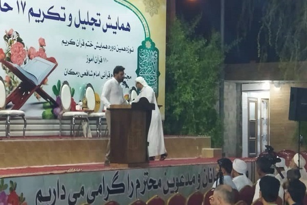 این مراسم با حضور حاجبی، امام جمعه شهرستان قشم، شیخ عبدالرحیم خطیبی امام جمعه اهل سنت قشم، شیخ محمد اسلامی امام جمعه شهر رمکان، شیخ محمد صالح پردل، شیخ محمد علی امینی، سرهنگ امیریکیا فرمانده سپاه ناحیه قشم، شهردار و اعضای شورای اسلامی رمکان در مجتمع علوم قرآنی امام شافعی رمکان برگزار شد.