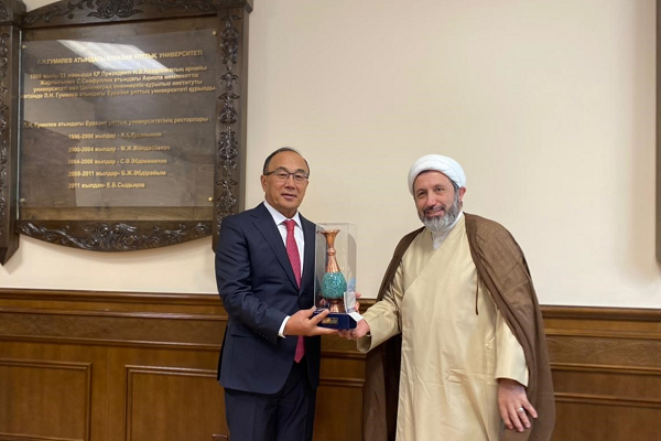 در ابتدای این دیدار، حجتالاسلام والمسلمین ایمانیپور توسط ریاست این دانشگاه و نماینده مجلس سنا مورد استقبال قرار گرفت و از موزه خط دانشگاه ملی اوراسیا که سیر تکاملی خط زبان قزاقی را نشان میدهد، بازدید کرد.