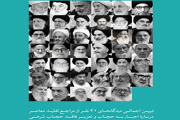 از جمله افرادی که در این گزارش، دیدگاه آنان درباره حجاب مورد بحث و بررسی قرار گرفته شامل امام خمینی(ره)، حضرات آیات عظام سیدعلی خامنهای، سیدحسین طباطبایی بروجردی، محمدتقی بهجت، میرزا جواد تبریزی، عبدالله جوادی آملی، سیدمحسن طباطبایی حکیم، سیدمحمود هاشمی شاهرودی، سیدابوالقاسم خویی، لطفالله صافی گلپایگانی، جعفر سبحانی، سیدمحمدباقر صدر، یوسف صانعی، سیدعلی سیستانی، سیدحسن طباطبایی قمی، سیدمحمدعلی علوی گرگانی، سیدعبدالکریم موسوی اردبیلی، سیدمحمدرضا گلپایگانی، حسین نوری همدانی، حسین وحید خراسانی، سیدشهابالدین مرعشی نجفی و ناصر مکارم شیرازی است.