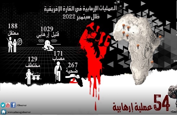 بر مبنای این گزارش تعداد عملیاتهای تروریستی انجام شده از سوی سازمانهای تروریستی و در رأس آن داعش، بوکوحرام و حرکة الشباب در ماه گذشته میلادی به 54 عملیات رسیده که در مقایسه با 45 عملیات انجام شده در ماه اوت، رشد چشمگیری داشته است.