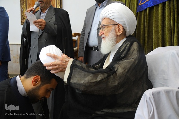 همزمان با فرخنده میلاد پیامبر اکرم(ص) صبح امروز ۲۲ مهرماه، مراسم عمامه گذاری طلاب حوزه علمیه قم در بیوت علما و مراجع قم برگزار شد.