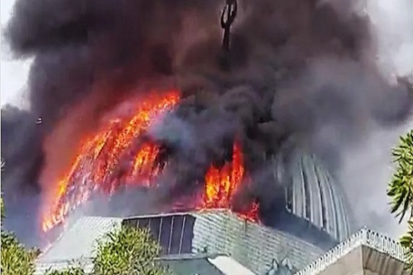 فروریختن گنبد مسجد بزرگ جاکارتای اندونزی بر اثر آتش‌سوزی