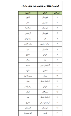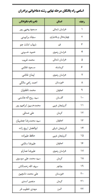 بر همین اساس در رشته دعاخوانی بانوان 17 نفر، رشته دعاخوانی آقایان 22 نفر، رشته مدیحهسرایی و همخوانی قرآن کریم بانوان 11 گروه، رشته مدیحهسرایی و همخوانی قرآن کریم آقایان 18 گروه و رشته اذان که ویژه آقایان است نیز 19 نفر به مرحله نهایی مسابقات سراسری راه یافتهاند.