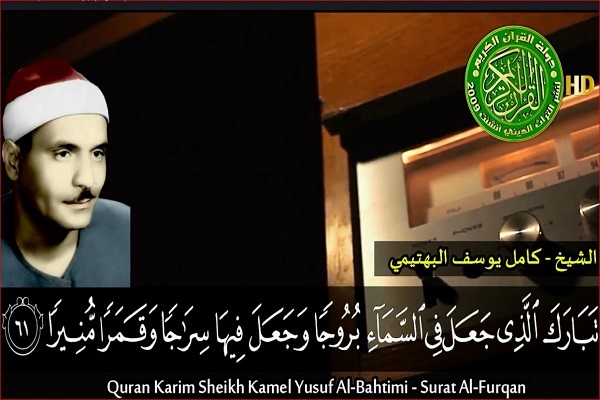 به گزارش ایکنا، کامل یوسف البهتیمی در این مقطع، آیات 61 تا 64 سوره نمل «تَبَارَكَ الَّذِي جَعَلَ فِي السَّمَاءِ بُرُوجًا وَجَعَلَ فِيهَا سِرَاجًا وَقَمَرًا مُنِيرًا: [فرخنده و] بزرگوار است آن كسى كه در آسمان برجهايى نهاد و در آن چراغ و ماهى نوربخش قرار داد»، «وَهُوَ الَّذِي جَعَلَ اللَّيْلَ وَالنَّهَارَ خِلْفَةً لِمَنْ أَرَادَ أَنْ يَذَّكَّرَ أَوْ أَرَادَ شُكُورًا: و اوست كسى كه براى هر كس كه بخواهد عبرت گيرد يا بخواهد سپاسگزارى نمايد، شب و روز را جانشين يكديگر گردانيد»، «وَعِبَادُ الرَّحْمَنِ الَّذِينَ يَمْشُونَ عَلَى الْأَرْضِ هَوْنًا وَإِذَا خَاطَبَهُمُ الْجَاهِلُونَ قَالُوا سَلَامًا : و بندگان خداى رحمان كسانى هستند كه روى زمين به نرمى گام برمىدارند و چون نادانان ايشان را طرف خطاب قرار دهند به ملايمت پاسخ مىدهند» و «وَالَّذِينَ يَبِيتُونَ لِرَبِّهِمْ سُجَّدًا وَقِيَامًا: و آنانند كه در حال سجده يا ايستاده شب را به روز مى آورند» را تلاوت کرده است که در ادامه میشنوید.