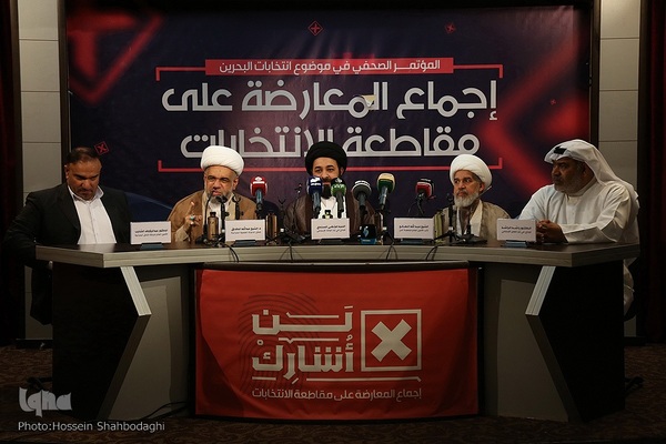 کنفرانس خبری گروه‌های مخالف حکومت آل خلیفه بحرین با عنوان «لن نشارک» در واکنش به انتخابات نمایشی این رژیم، در مرکز فرهنگی «مرفا الکلمه» قم برگزار شد.