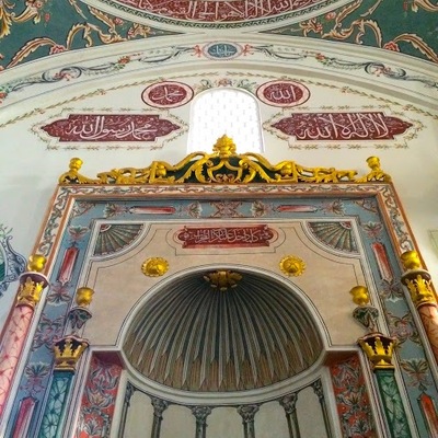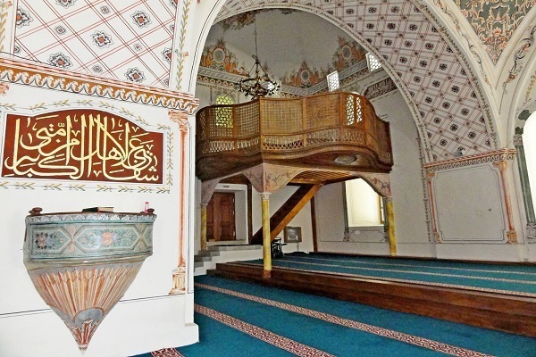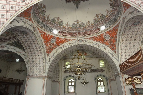 تزیینات دیواری شگفتانگیز داخل مسجد با تزئینات گیاهی غنی پر شده است؛ شاخهها، گلها و گلدستهها که بین مدالهایی با نقل قولهایی از قرآن قرار گرفتهاند. نقاشیهای دیواری احتمالاً مربوط به اواخر قرن هفدهم و آغاز قرن نوزدهم است.