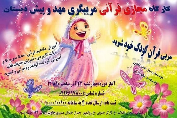به گزارش ایکنا، مؤسسه رسول عصر ثقلین وابسته به دارالقرآن خانه کارگر دوره مجازی قرآنی مربیگری مهد و پیشدبستانی را برگزار میکند.