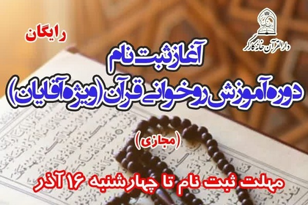 ثبت نام دوره‌ آموزشی مجازی روخوانی قرآن ویژه آقایان در سراسر کشور به همت دارالقران خانه کارگر آغاز شد.