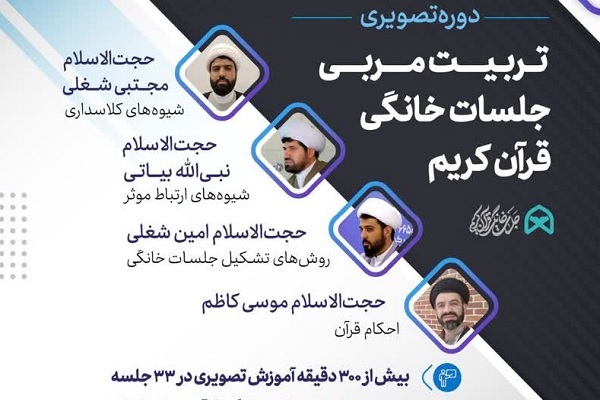 به گزارش ایکنا، دوره تصویری «تربیت مربی جلسات خانگی قرآن» از سوی پویش جلسات خانگی قرآن کریم و به همت مدرسه مجازی طه از مراکز زیر مجموعه جامعه قرآنی عصر، با تدریس اساتیدی از جمله حجج اسلام نبیالله بیاتی، مجتبی شغلی، امین شغلی و سیدشمس الدین موسی کاظم برگزار میشود.