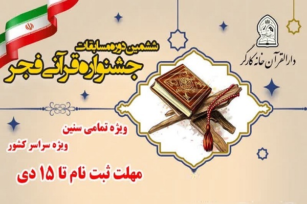علاقهمندان به شرکت در این مسابقات میتوانند تا ۱۵ دیماه برای ثبتنام عدد ۶ را به سامانه ۱۰۰۰۰۱۰۰۱۰۰ ارسال یا به پایگاه اینترنتی دارالقرآن خانه کارگر www.ketabequran.ir مراجعه کنند.
