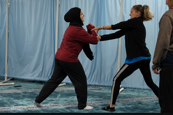 مریم و دخترش زینب صبر، به شدت دستورالعملها را دنبال میکردند، روی زمین غلت میزدند و سؤال میپرسیدند تا مطمئن شوند که میتوانند حرکات خود را کامل کنند. مریم صبر از طریق مسجد در مورد کلاس شنیده بود و با دختر 17 سالهاش شرکت میکرد.
