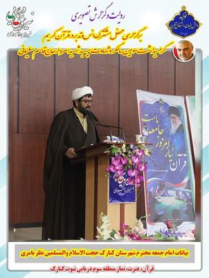 در بخش دیگر این برنامه حجت‌الاسلام نظر بامری، امام‌جمعه شهرستان کنارک به سخنرانی پرداخت و گفت: حاج قاسم سلیمانی از مفاخر ملی و هچنین جهان اسلام و جبهه مقاومت است. منش بزرگ سردار سلیمانی، منشی مملو از ایثار، از خودگذشتگی، حماسه و مقاومت بود و ترویج آن‌ نه تنها در ایران بلکه در جهان زبانزد خاص و عام‌ بوده و هست.