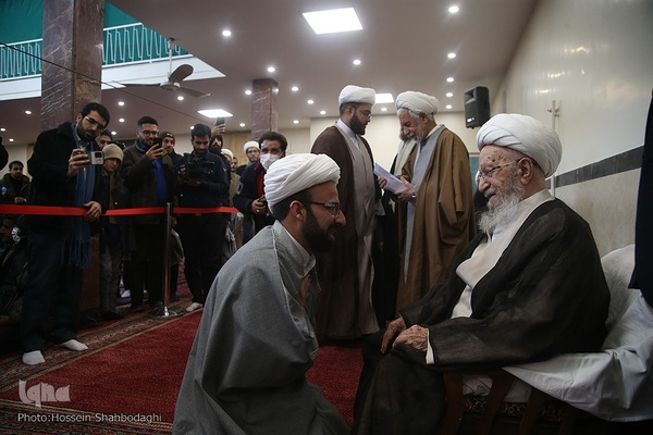 مراسم عمامه گذاری جمعی از طلاب در سالروز ولادت حضرت زهرا(س) امروز جمعه ۲۳ دی توسط آیات عظام مکارم شیرازی، نوری همدانی و فاضل لنکرانی برگزار شد.
