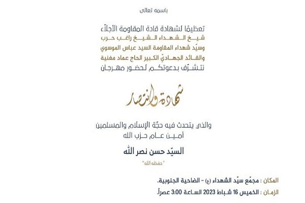به گزارش ایکنا به نقل از العهد، سید حسن نصرالله، دبیر کل حزبالله لبنان، پنجشنبه آینده 16 فوریه (27 بهمن) در جشنواره «شهادت و پیروزی» به مناسبت سالگرد رهبران شهید حزبالله سخنرانی خواهد کرد.