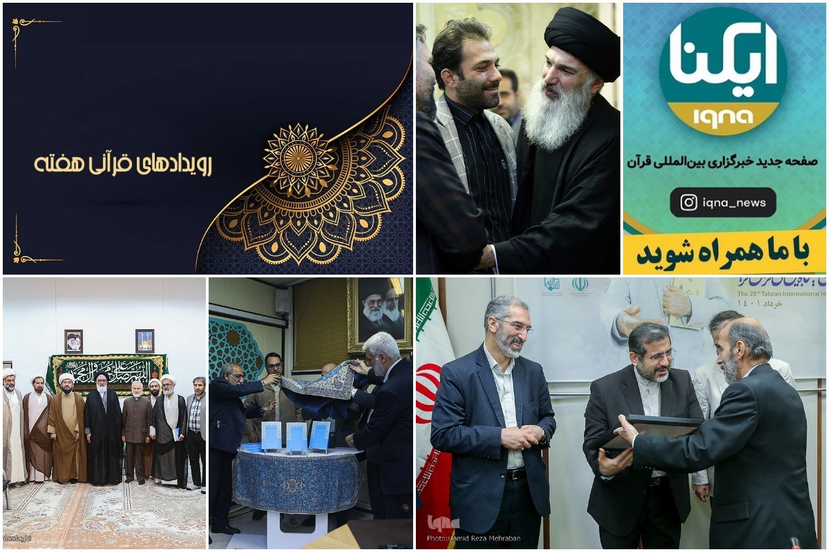 از دیگر خبرهای مهم قرآنی این هفته اعلام اسامی افراد معاف از حضور در مراحل مقدماتی مسابقات سراسری قرآن، نحوه برگزاری بینالمللی جشنواره تلاوتهای مجلسی، راهاندازی صفحه جدید اینستاگرام ایکنا، معرفی ۱۰ دانشگاه برتر جشنواره قرآنی وزارت بهداشت، تجلیل از مدیران نمایشگاه قرآن، برگزاری ششمین نشست بررسی برنامههای ستاد راهبری حفظ قرآن، تشکیل دو کارگروه برای بررسی تفصیلی برنامههای قرآنی، پایان دومین دوره طرح ساماندهی داوران مسابقات قرآن، اجرای طرح «حافظ مبلّغ قرآن شوید» و ابلاغ مصوبه ارتقای جایگاه ستاد راهبری طرح ملی حفظ قرآن بود.