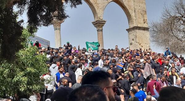 نمازگزاران فلسطینی پس از اقامه نماز جمعه اقدام به سردادن شعارهایی در حمایت از مقاومت فلسطین در صحنهای مسجدالاقصی کردند و پرچمهای گروههای مقاومت فلسطینی را در صحنهای این مسجد بر افراشتند.