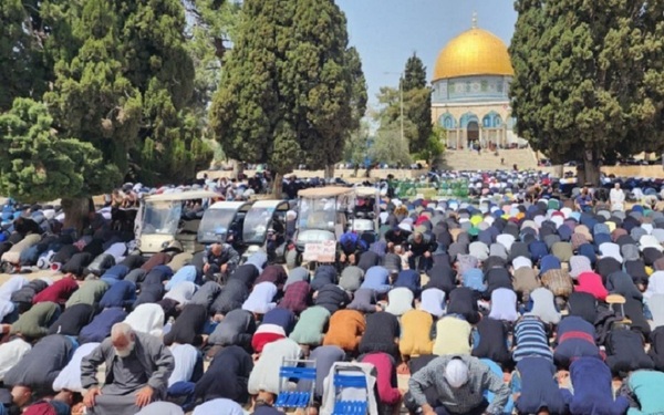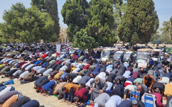 بنا بر این گزارش، خیل عظیم شهروندان فلسطینی در حالی سومین نماز جمعه ماه مبارک رمضان را در قبله نخست مسلمانان اقامه کردند که بیش از 2300 نظامی صهیونیست در دروازههای مسجدالاقصی و دروازههای بخش قدیمی بیتالمقدس اشغالی مستقر شده و راههای اصلی منتهی به مسجد را بسته بودند.