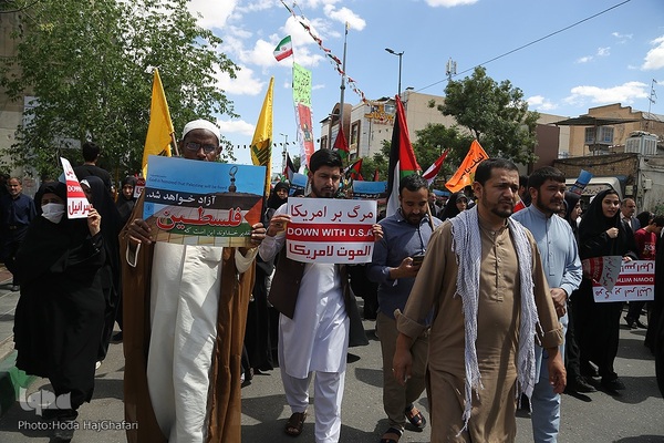 همزمان با آخرین جمعه ماه مبارک رمضان و روز جهانی قدس، مسلمانان ملل مختلف مقیم شهر قم در کنار مردم مومن و ولایت‌مدار این شهر راهپیمایی کردند.