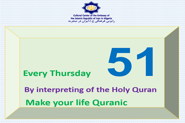 پنجاه و یکمین کلیپ «پنجشنبه‌ها زندگی خود را قرآنی کنیم» با اشاره به شش نام از نام‌های الهی(اسماء الحسنی) از سوی رایزنی فرهنگی ایران در نیجریه منتشر شد.