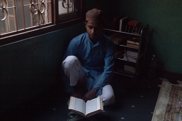 کفشهایمان را درآوردیم و داخل رفتیم. پنجرههای بزرگ فضا را روشن و تقویمهای رمضانی روی دیوارها را در کنار نسخههایی از ترجمههای انگلیسی، هندی و نپالی از قرآن قابل دیدن میکرد. مسلمانان در ماه رمضان از طلوع تا غروب آفتاب روزه میگیرند.