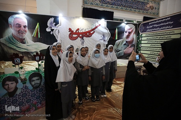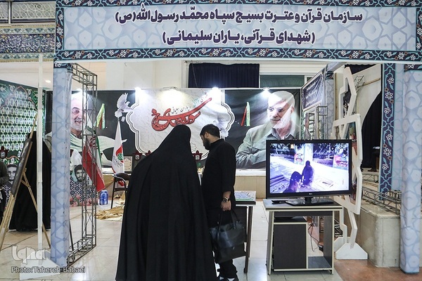 رئیس سازمان قرآن و عترت بسیج سپاه محمد رسولالله(ص) تهران بزرگ اظهار کرد: بر این اساس غرفه ویژه «شهدای قرآنی یاران سلیمانی» در نمایشگاه قرآن برپا شد. محل غرفه تقریباً جایی بود که ورود به بخشهای اصلی نمایشگاه از آنجا شروع میشد و عموم بازدیدکنندگان بازدید خود را با ادای احترام به شهدای قرآنی از جمله شهید سلیمانی و ابومهدی المهندس آغاز میکردند.