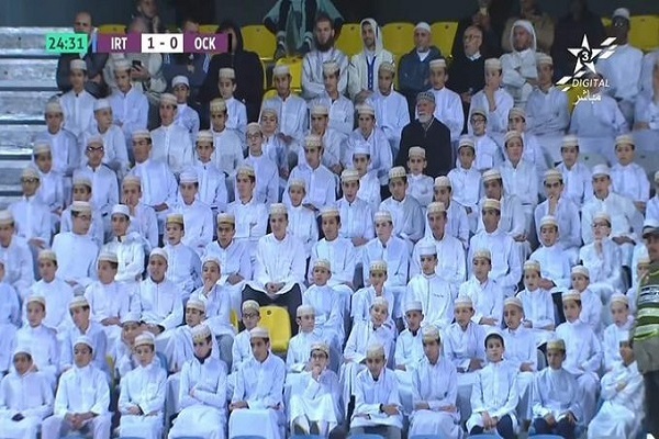 کودکان حافظان قرآن کریم از مدرسه عمر بن الخطاب در شهر طنجه مراکش با حضور در ورزشگاه شهر تیم خود را تشویق کردند.