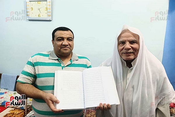 این معلم مصری در این باره میگوید: با پایان کتابت قرآن، احساس خوشبختی و آرامش کامل داشتم و حس میکردم خداوند پس از اینکه با بیماری صبر مرا آزموده، توفیق داده است که این صدقه جاری را انجام دهم.