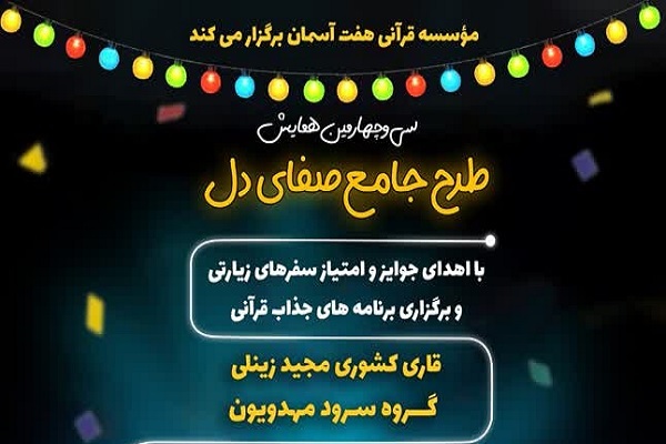 سی و چهارمین همایش طرح جامع قرآنی «‌صفای دل» از سوی مؤسسۀ فرهنگی - قرآنی هفت آسمان برگزار می‌شود.