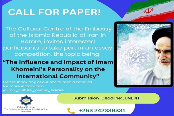 به گزارش ایکنا به نقل از سازمان فرهنگ و ارتباطات اسلامی، به منظور آشنایی هر چه بیشتر دانشآموزان و دانشجویان با امام راحل و شناسایی علاقهمندان به انقلاب اسلامی، مسابقه مقالهنویسی به همت رایزنی فرهنگی ایران در زیمبابوه برگزار میشود.