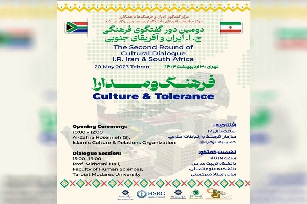 به گزارش روابط عمومی سازمان فرهنگ و  ارتباطات اسلامی، دومین دور گفت‌وگوی فرهنگی ایران و آفریقای جنوبی  با موضوع «فرهنگ و مدارا» با همکاری مشترک مرکز گفت‌وگوی ادیان و فرهنگ‌های سازمان فرهنگ و ارتباطات اسلامی، شورای تحقیقات علوم انسانی آفریقای جنوبی و مرکز مطالعات آفریقای دانشگاه تربیت مدرس در تهران برگزار می‌شود.