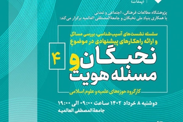 چهارمین نشست از سلسله نشست‌های آسیب‌شناسی، بررسی مسائل و ارائه راهکارهای پیشنهادی در موضوع نخبگان و مسئله هویت به میزبانی جامعه المصطفی(ص) العالمیه برگزار می‌شود.