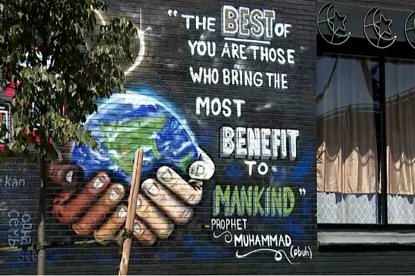 به گزارش ایکنا به نقل از CNN، حدیثی از حضرت محمد(ص) برای کمک به انسانها در بیرون ساختمانی غیرقابل توصیف در بروکلین جنوبی نقاشی شده است که درهای خود را به روی مهاجران از تمام مذاهب باز کرده است.