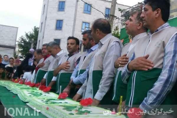 به گزارش خبرنگار افتخاری ایکنا، جشن رونمایی از کیک ۸ متری پخته شده توسط بانوان عضو کانون خدمت رضوی، عصر امروز ۹ خردادماه، بهمناسبت سالروز میلاد هشتمین رهبر و پیشوای شیعیان حضرت امام رضا(ع) در میدان سپهبد شهید حاج قاسم سلیمانی شهر کمالشهر کرج برگزار شد.