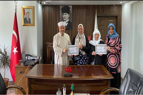 در این مراسم، مفتی استان ارجان آکسو، این مادر و دختر را با اصول اساسی اسلام آشنا کرد.