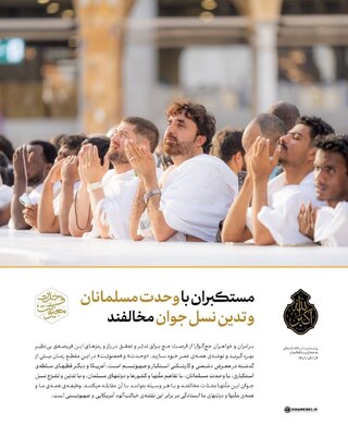 رهبر معظم انقلاب در بخشی از پیام به حجّاج بیتاللهالحرام فرمودند «کعبه به عنوان نقطه مرکزی و محور اصلی توجّهات آحاد مسلمانان، و آئین حج همچون نمونه کوچک از گستره متنوّع دنیای اسلام، میتواند در خدمت تعالیِ جامعه بشری و سلامت و امنیّت همه انسانها باشد». در ادامه پیام رهبر معظم انقلاب را در قالب فتوتیتر مشاهده میکنید.