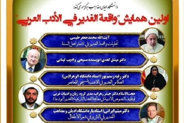 در این همایش آیتالله محمد جعفر طبسی، استاد حوزه و دانشگاه، میشل کعدی، نویسنده مسیحی و ادیب لبنانی، رقیه رستمپور، استاد دانشگاه الزهرا(س)، حیدر زهراب، مدیر گروه زبان و ادبیات عربی دانشکده زبان و فرهنگ ملل و میثم ایرانی، استادیار دانشگاه ادیان و مذاهب، به ایراد سخن خواهند پرداخت.