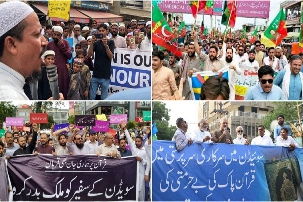 مسلمانان پاکستان امروز پس از اقامه نماز جمعه با نمایش وحدت و یکپارچگی علیه توطئه دشمنان اسلام، در شهرهای بزرگ و کوچک علیه افزایش پدیده شوم اسلام هراسی در غرب تظاهرات کرده و یکصدا توهین به قرآن کریم در سوئد را محکوم کردند.