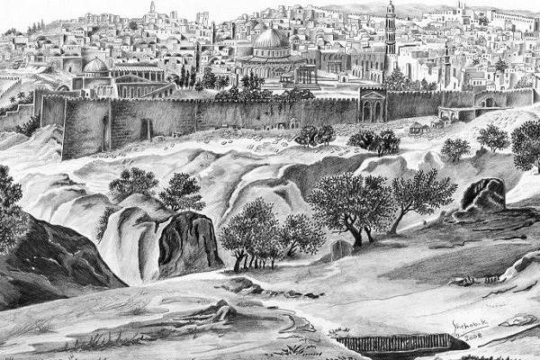 این هنرمند حدود 30 نقاشی را به نمایش گذاشته است که تقریباً نیمی از آنها رنگی و نیمی دیگر عمدتاً سیاه‌وسفید است و در آن کوشیده شده که قدس را همان‌گونه که هست به تصویر بکشد. در این آثار دروازه‌ها، مناره‌ها، برج‌ها، دیوارهای باستانی و بازارهای کهن در کنار مردم و فعالیت‌های آنها ترسیم شده است.
