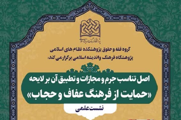نشست اصل تناسب جرم و مجازات و تطبیق آن بر لایحه حمایت از فرهنگ عفاف و حجاب سه‌شنبه 27 تیر برگزار می‌شود.