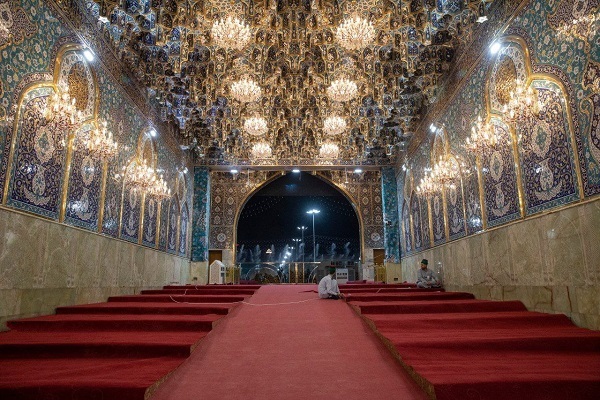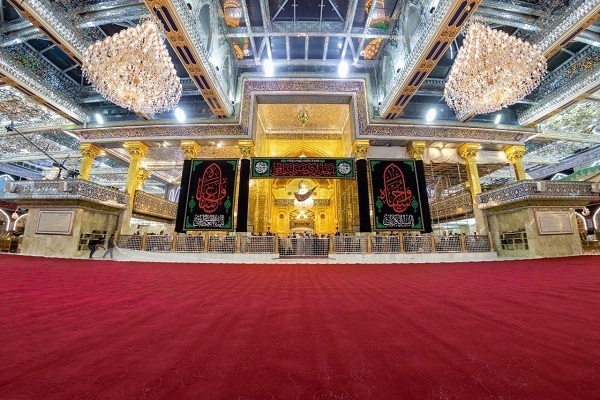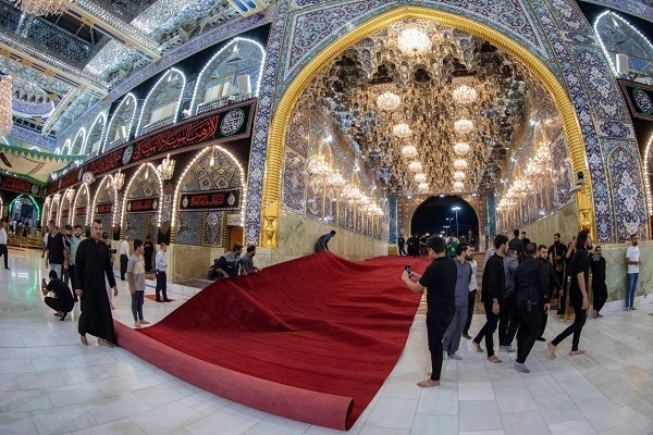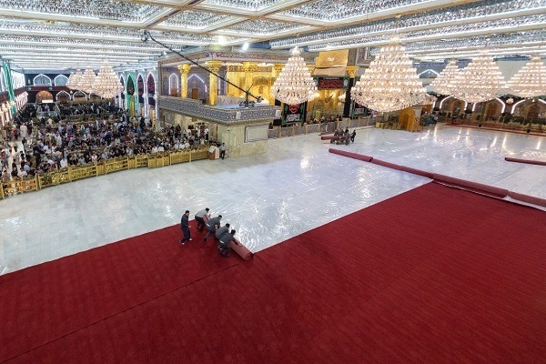 حرم مطهر حضرت عباس(ع) در آستانه آغاز ماه محرم الحرام با موکت قرمز مفروش شد.